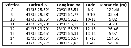 El sector 1-Tramo 2 (bodega, patio de acopio y galpones) tiene una superficie de 6.902,20 m2, sus coordenadas geográficas, tramos y medidas son los siguientes:
