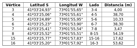 La porción de agua se encuentra conformada por los siguientes sectores: Sector 3 - Tramo 1 (boya 1) cuyas coordenadas geográficas son las siguientes: