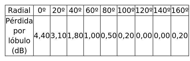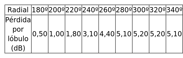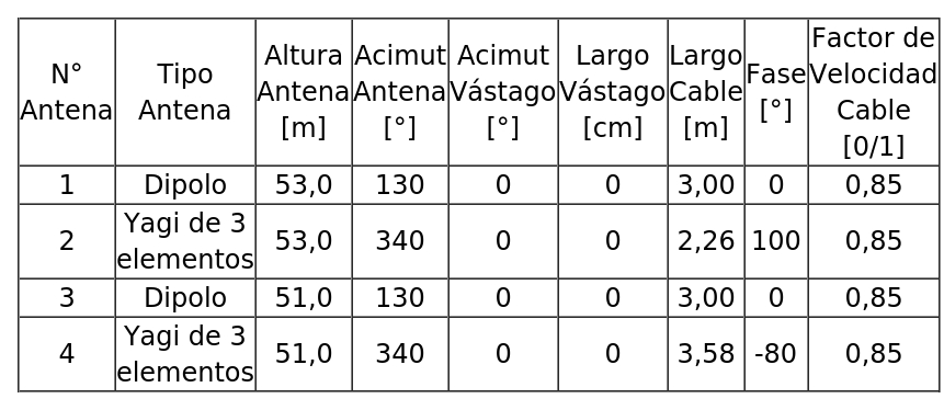 - Arreglo de antenas, de acuerdo al siguiente cuadro:
