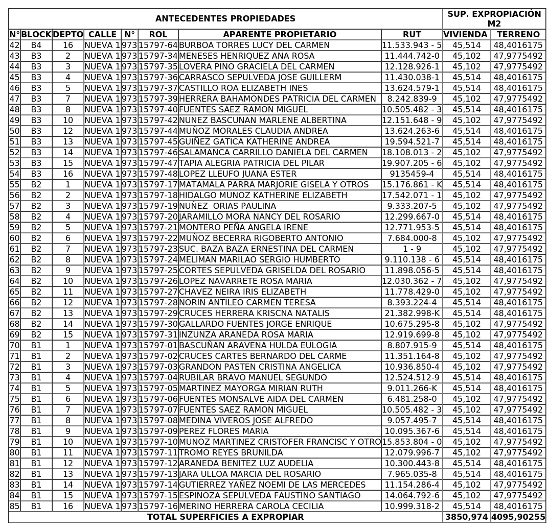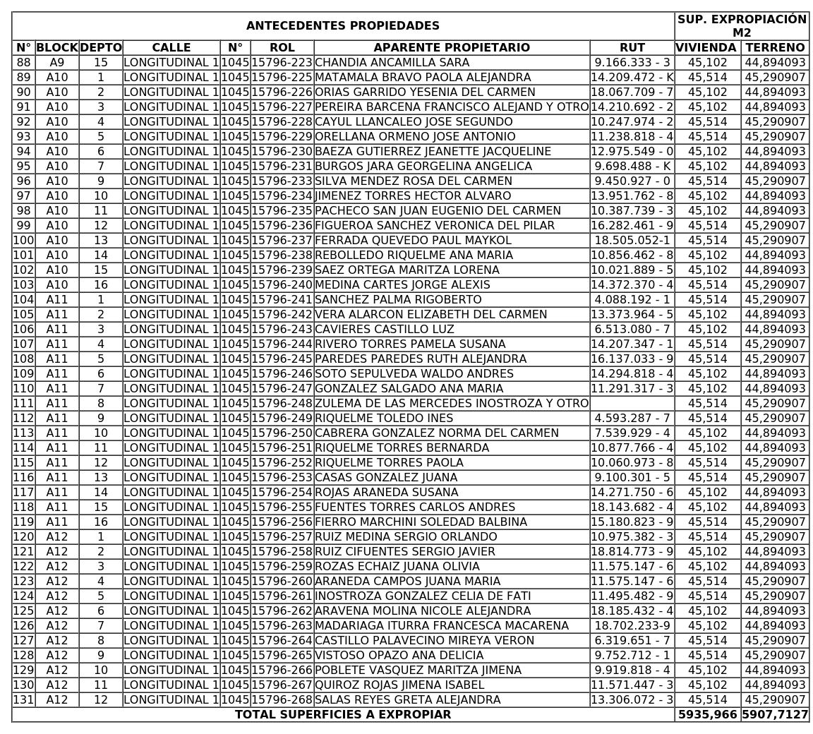 La superficie aproximada a expropiar respecto a las unidades de departamento es de 15.676,98 m² y respecto a los derechos de cada unidad en los bienes de dominio común es de 16.059,57495 m².