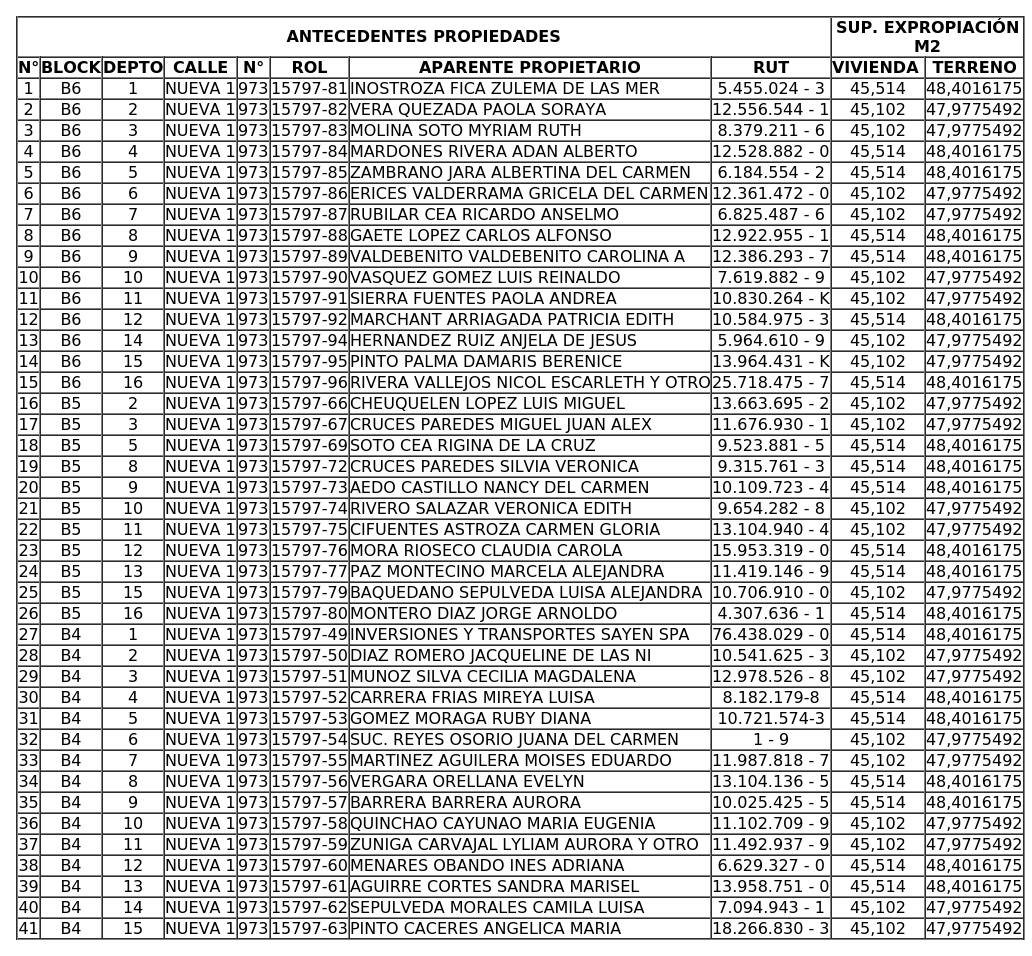 5. Que, la Copropiedad B, que se ubica en calle Nueva 1 N° 973, de la comuna de San Pedro de la Paz, tiene una superficie de terreno total de 4.626,91 m2, una superficie edificada de 4.349,57 m2 y posee 96 unidades habitacionales. Además, ha sido identificada en el Sistema Integrado de Bienes Inmuebles Serviu (SIBIS) con el código 08-02228.