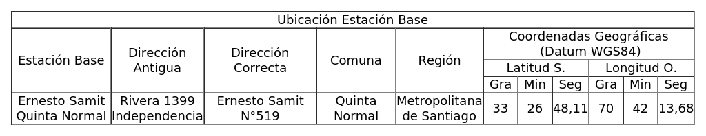 1. Según Ingreso Subtel N°105.424 de 2025: Autorízase a la concesionaria para rectificar la dirección de una (1) Estación Base autorizada mediante decreto supremo del literal d) de los Vistos, como se indica a continuación.