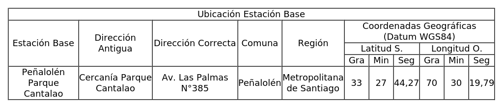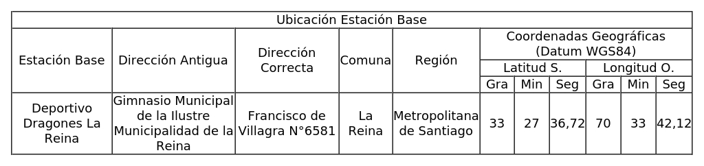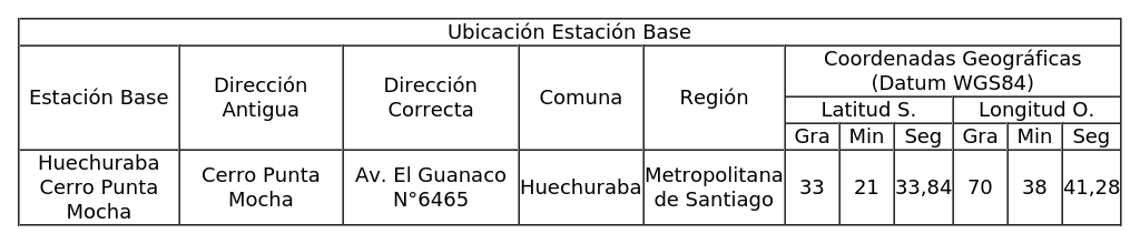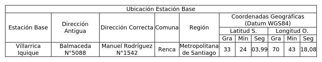 3. Según Ingreso Subtel N°105.427 de 2025: Autorízase a la concesionaria para rectificar la dirección de una (1) Estación Base autorizada mediante decreto supremo del literal d) de los Vistos, como se indica a continuación.