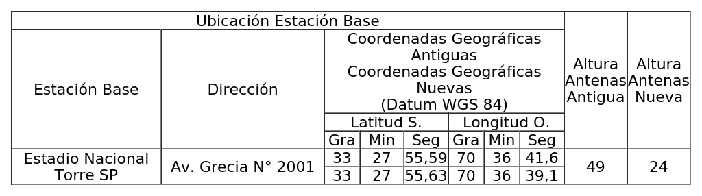 1. Autorízase a la concesionaria para rectificar las coordenadas geográficas y la altura de una (1) Estación Base autorizada mediante decreto supremo del literal d) de los Vistos, como se indica a continuación.