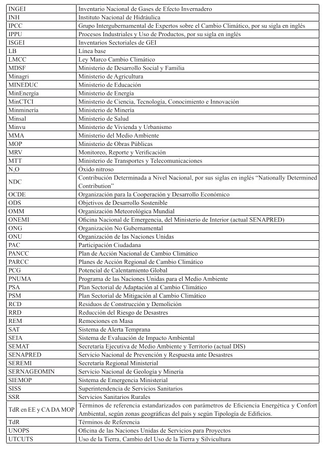Lo dispuesto en los artículos 6, 7, 32 N° 6 y 35 de la Constitución Política de la República, cuyo texto refundido, coordinado y sistematizado fue fijado por el decreto supremo N° 100, de 2005, del Ministerio Secretaría General de la Presidencia; en el decreto con fuerza de ley N° 1/19.653, de 2000, del Ministerio Secretaría General de la Presidencia, que fijó el texto refundido, coordinado y sistematizado de la Ley N° 18.575, Orgánica Constitucional de Bases Generales de la Administración del Estado; en la ley N° 19.880, que Establece Bases de los Procedimientos Administrativos que rigen los Actos de los Órganos de la Administración del Estado; en el decreto con fuerza de ley N° 850 de 1998, que fija el texto refundido, coordinado y sistematizado de la ley N° 15.840, de 1964 y del DFL. N° 206, de 1960; en decreto ley N° 1.263, de 1975, del Ministerio de Hacienda, Decreto Ley Orgánico de Administración Financiera del Estado; en la ley N° 19.300, sobre Bases Generales del Medio Ambiente; en la ley N° 20.417, que crea el Ministerio de Medio Ambiente, el Servicio de Evaluación Ambiental y la Superintendencia del Medio Ambiente; en el decreto con fuerza de ley N° 88, de 1953, del Ministerio de Hacienda, que adopta las medidas que indica en relación con el Ministerio de Economía y Comercio y sus atribuciones y actividades; en la ley N° 20.502, que Crea el Ministerio del Interior y Seguridad Pública y el Servicio Nacional para la Prevención y Rehabilitación del Consumo de Drogas y Alcohol, y modifica diversos cuerpos legales; en el decreto con fuerza de ley N° 294, de 1960, del Ministerio de Hacienda, que establece funciones y estructura Ministerio de Agricultura; en la Ley N° 20.530, que crea el Ministerio de Desarrollo Social y Familia y modifica cuerpos legales que indica; en la ley N° 20.820, que crea el Ministerio de la Mujer y la Equidad de Género, y modifica normas legales que indica; en la Ley N° 20.424, Estatuto Orgánico del Ministerio de Defensa Nacional; en el decreto ley N° 557, que Crea el Ministerio de Transportes; en la ley N° 16.391 que Crea el Ministerio de la Vivienda y Urbanismo; en la ley N° 6.640 que Aprueba el Texto Refundido de la ley N° 6.334, que Creó las Corporaciones de Reconstrucción y Auxilio y de Fomento a la Producción, del Ministerio de Hacienda; en la ley N° 20.500, sobre Asociaciones y Participación Ciudadana en la Gestión Pública; en la ley N° 20.285, sobre Acceso a la Información Pública; en la Ley N° 21.455, Marco de Cambio Climático; en los decretos supremos N° 123, de 1995, N° 349, de 2004 y N° 30, de 2017, todos del Ministerio de Relaciones Exteriores, que promulgan, respectivamente, la Convención Marco de Naciones Unidas sobre el Cambio Climático, el Protocolo de Kioto y el Acuerdo de París adoptado en la Vigésimo Primera Reunión de la Convención Marco de las Naciones Unidas sobre el Cambio Climático; en el decreto supremo N° 16, de 2023, del Ministerio del Medio Ambiente, que aprueba reglamento que establece procedimientos asociados a los instrumentos de gestión del cambio climático; en la resolución N° 315, de 6 de febrero de 2015, del Ministerio de Obras Públicas, que aprueba norma General de Participación Ciudadana; en el Acuerdo N° 26, de 21 de noviembre de 2024, del Consejo de Ministros para la Sustentabilidad y el Cambio Climático; y en la resolución N° 7, de 2019, de la Contraloría General de la República, que fija normas sobre exención del trámite de toma de razón; y,