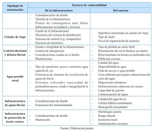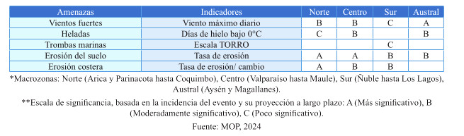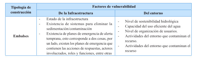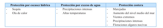 Tabla 2: Amenazas climáticas extremas que afectan los servicios que presta la infraestructura de protección del territorio