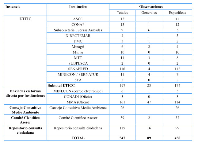 Tabla 3: Observaciones Recibidas en Etapa de Participación Ciudadana Temprana y Consulta Ciudadana