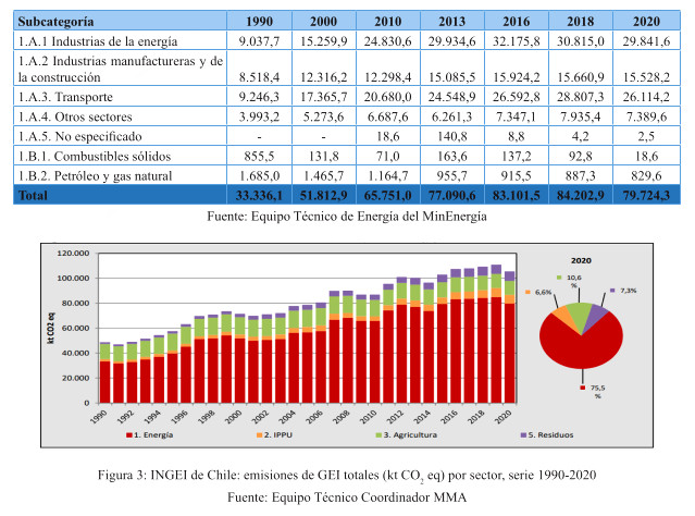 Tabla 4: Sector Energía: emisiones de GEI (kt CO2 eq) por subcategoría, serie 1990-2020