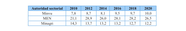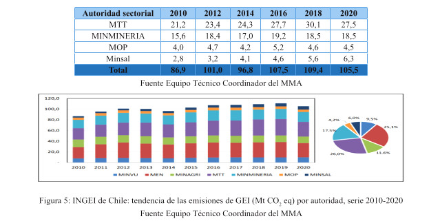 Tabla 5: INGEI de Chile: emisiones de GEI (Mt CO2 eq) por autoridad, serie 2010-2020