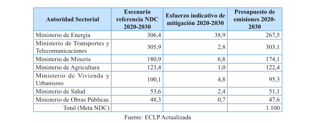 Tabla 6. Asignación sectorial del presupuesto de emisiones del período 2020-2030 (MtonCO2eq)