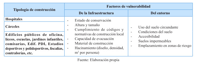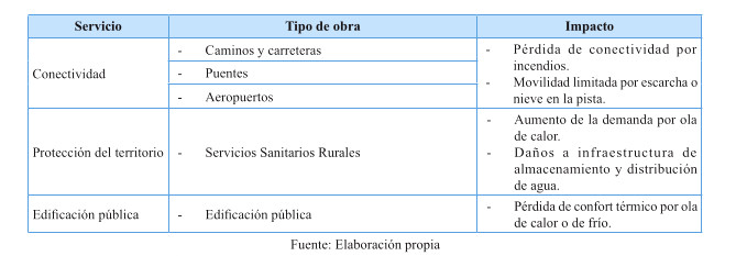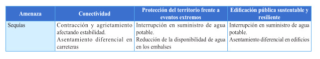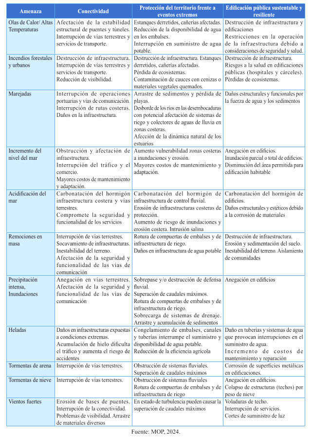 Tabla 12: Potenciales impactos de las amenazas climáticas sobre los servicios de infraestructura y la edificación pública