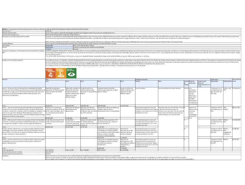 Medida 1. Incorporación de análisis de proyecciones climáticas extremas en etapa de diseño de los proyectos: diseños resilientes al cambio climático