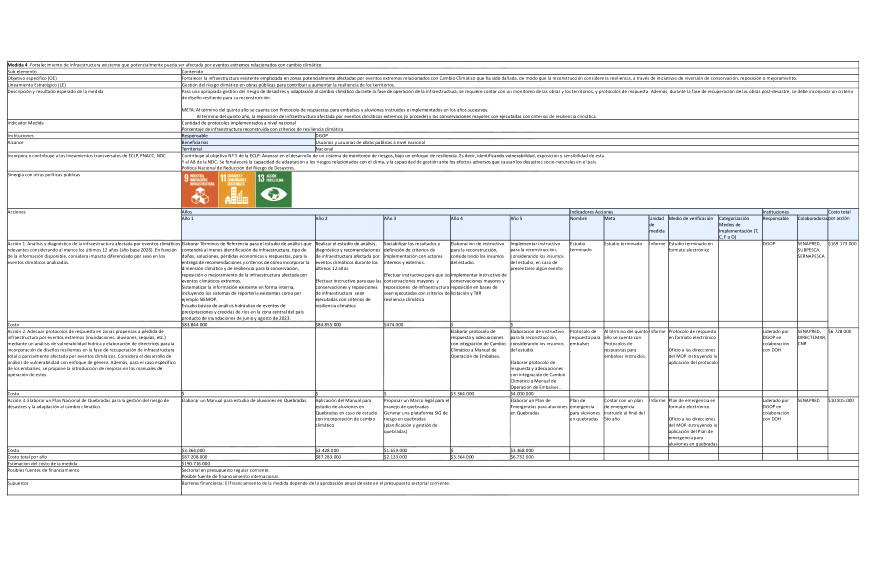 Medida 4. Fortalecimiento de infraestructura existente que potencialmente pueda ser afectada por eventos extremos relacionados con cambio climático