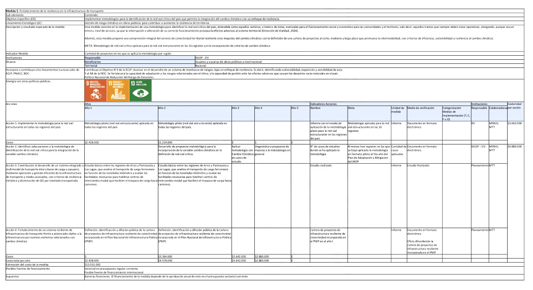 Medida 5. Fortalecimiento de la resiliencia en la infraestructura de transporte