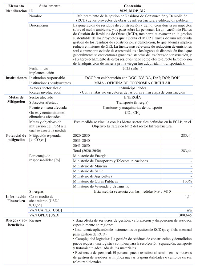 Medida 7: Mejoramiento de la gestión de Residuos de Construcción y Demolición (RCD) de los proyectos de obras de infraestructura y edificación pública.
