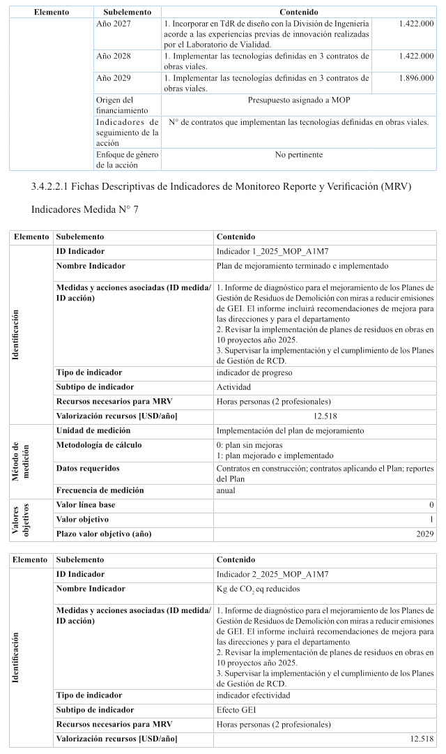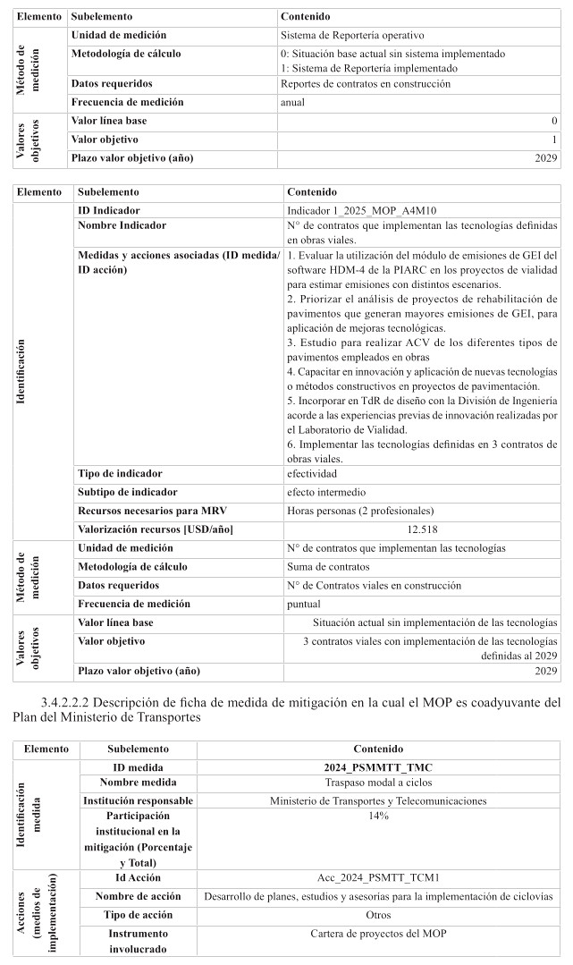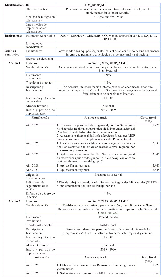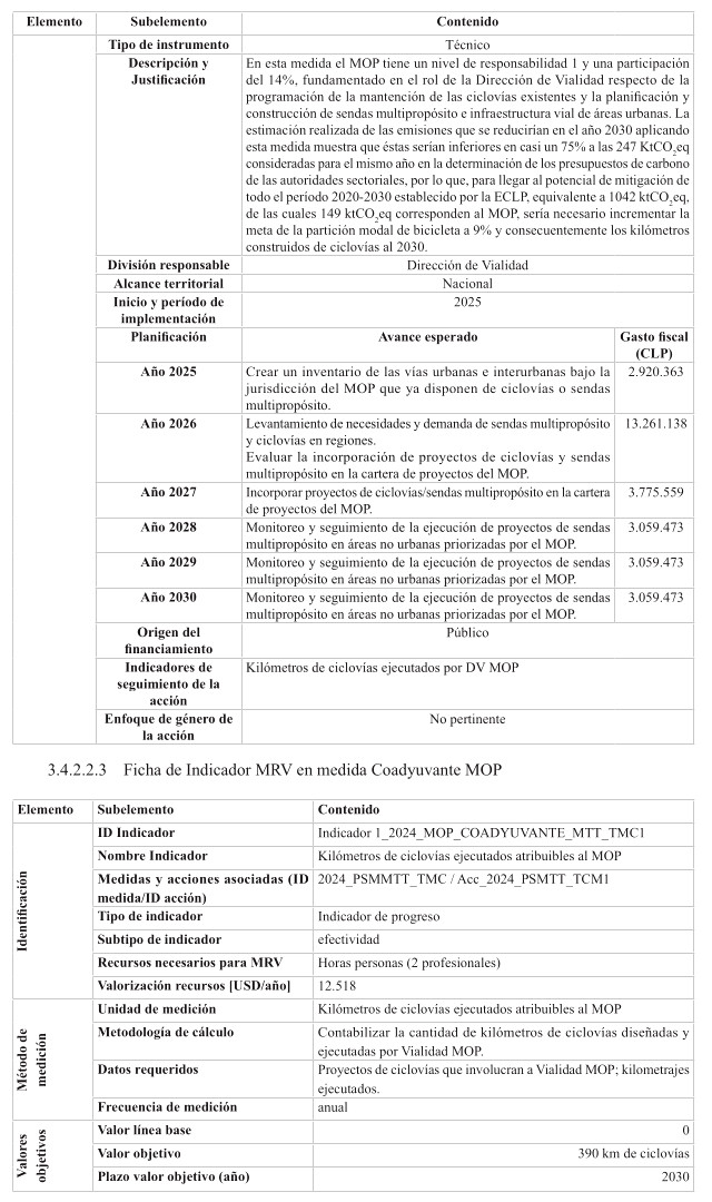 Además, se monitoreará y reportará anualmente las medidas en las que el Ministerio de Obras Públicas sea asignado como coadyuvante en otros Planes sectoriales, tanto de adaptación como de mitigación. Esta colaboración como coadyuvante considera proveer durante las distintas fases de implementación de los planes, en los cuales aplique, información, insumos y estudios técnicos (en caso de aplicar), en la forma y en los plazos definidos por la autoridad sectorial responsable del instrumento.