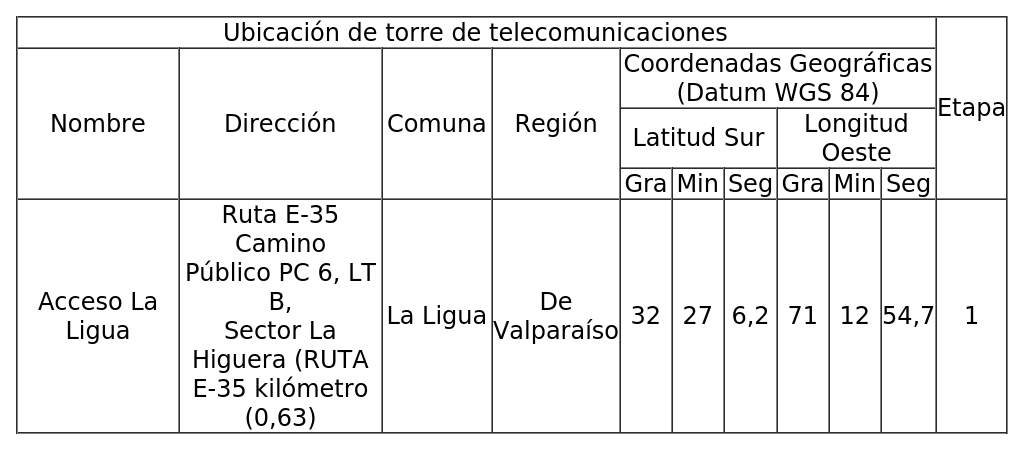 1. Autorízase a la concesionaria para instalar, operar y explotar una (1) torre de telecomunicaciones, destinada a soportar sistemas radiantes, según se indica a continuación: