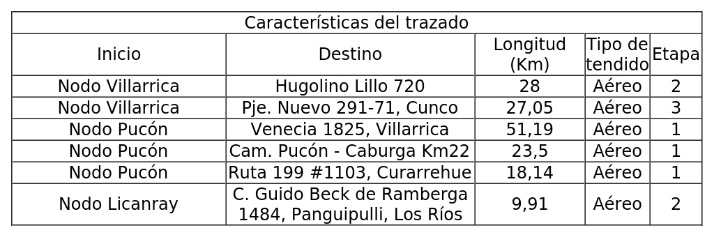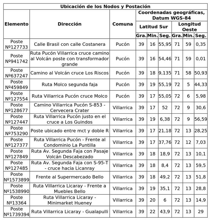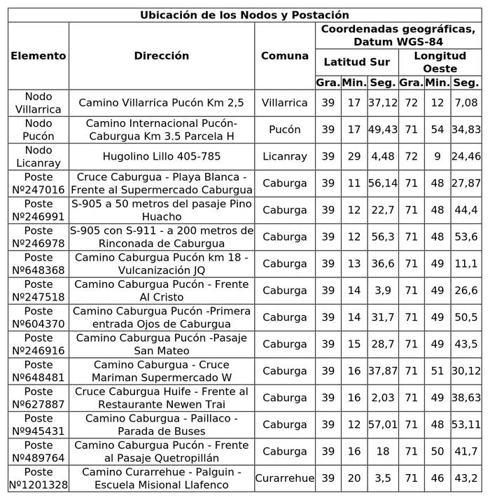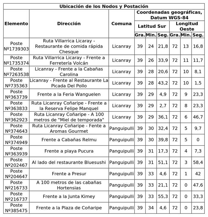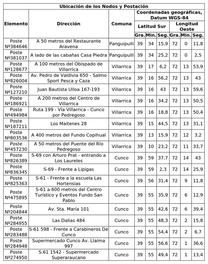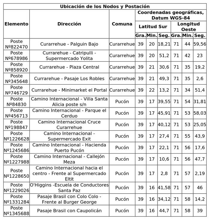 3. Ubicación de los Nodos y Postación, para la Región de La Araucanía: