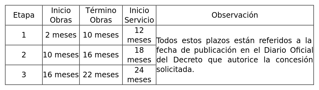 - Periodo de Vigencia : 30 años contados desde la publicación en el Diario Oficial del presente decreto.