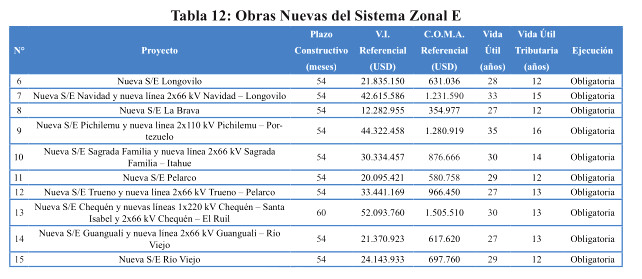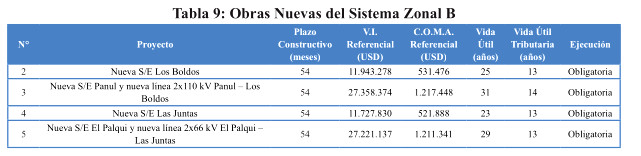 El siguiente cuadro presenta las obras nuevas de expansión necesarias para el Sistema B de Transmisión Zonal.