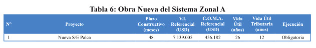 El siguiente cuadro presenta la obra nueva de expansión necesaria para el Sistema A de Transmisión Zonal.