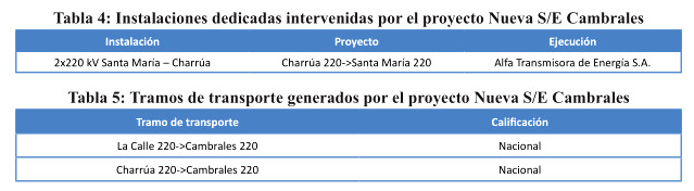 El proyecto consiste en la construcción de una nueva subestación, denominada Cambrales, mediante el seccionamiento de la línea 2x220 kV Santa María – Charrúa con sus respectivos paños de línea y un patio de 220 kV en configuración interruptor y medio.