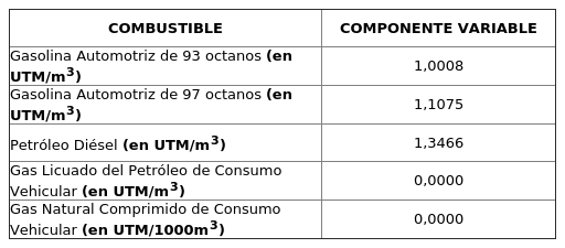 2.- Aplícanse a contar del día 15 de enero de 2026, los componentes variables expuestos en la tabla precedente, del numeral anterior.