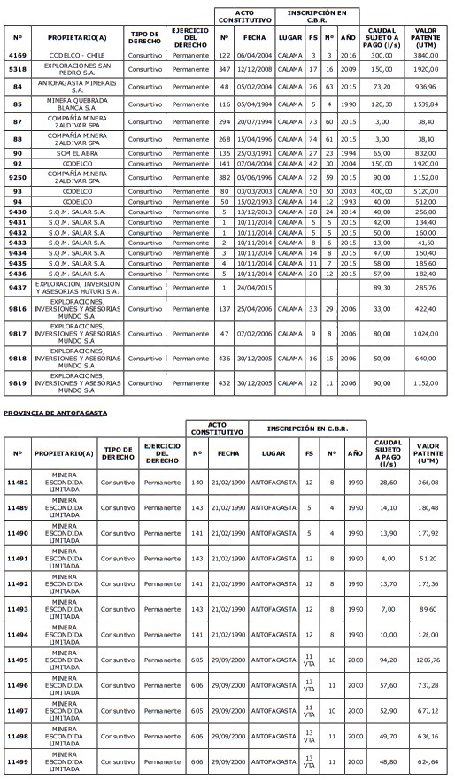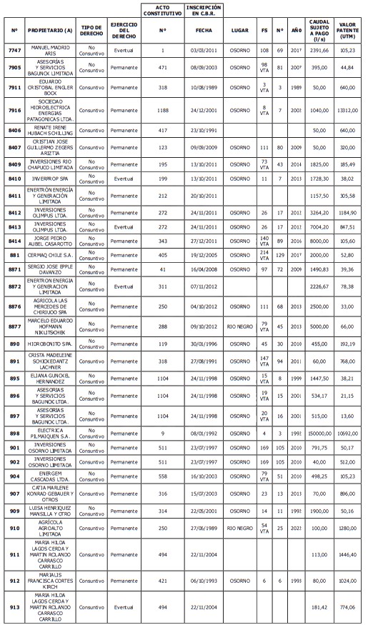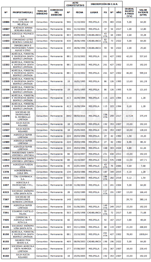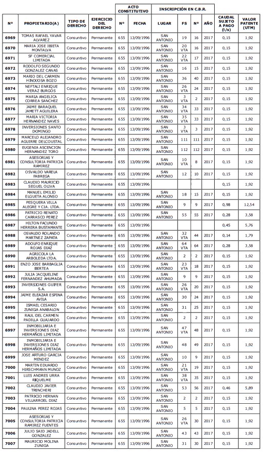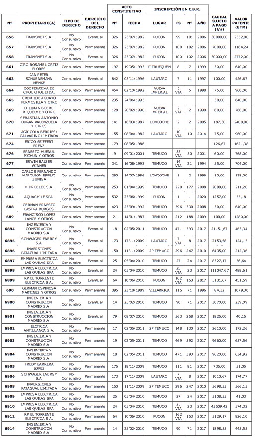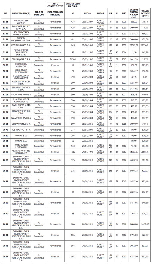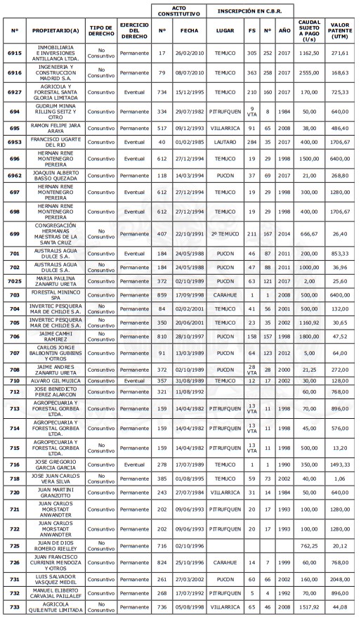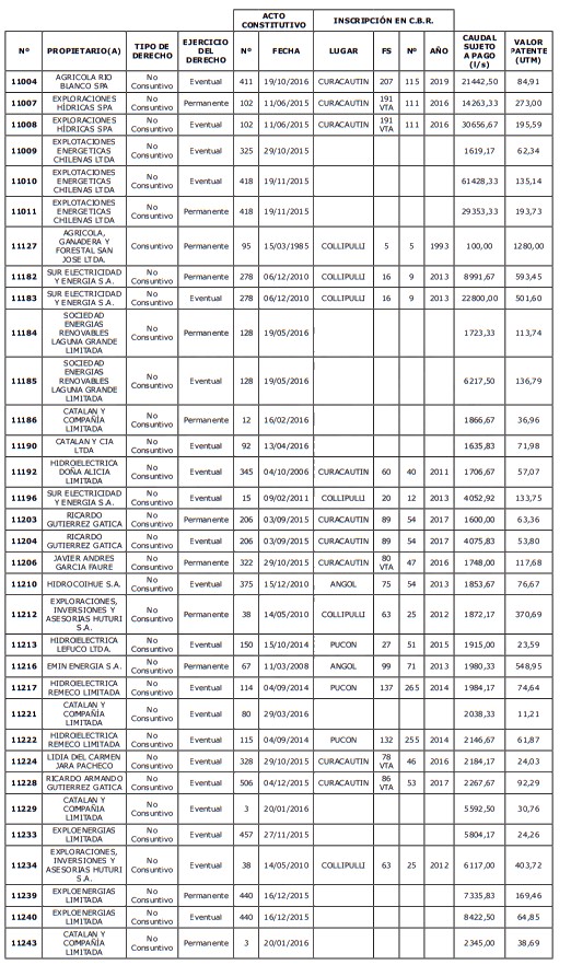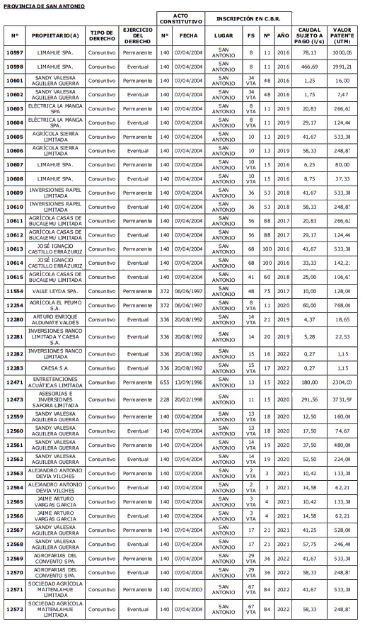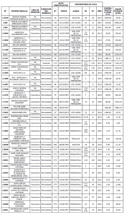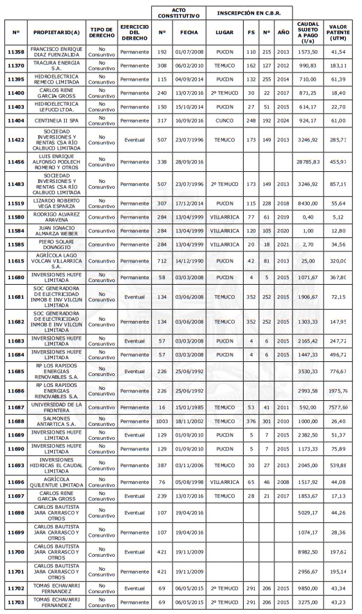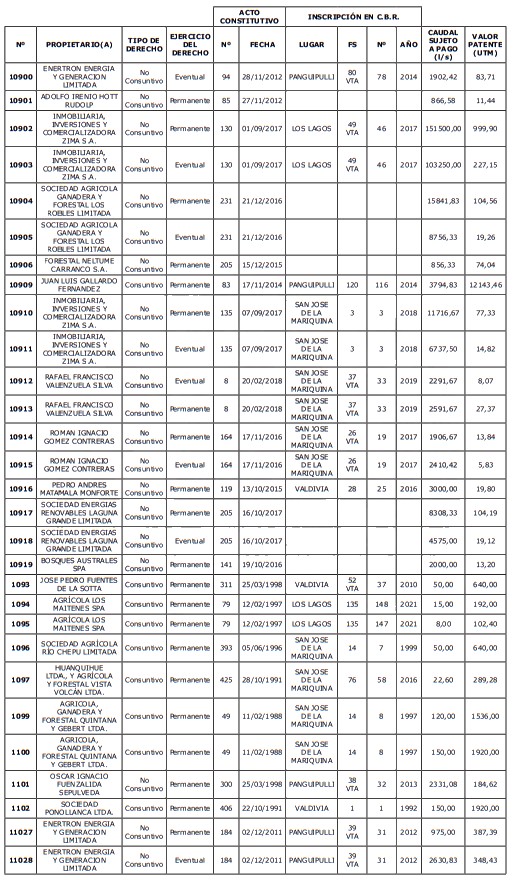 5. Déjase constancia que según establece el artículo 129 bis 7 del Código de Aguas, las personas, tanto naturales como jurídicas, que han sido identificadas en el presente listado, deberán pagar la patente dentro del mes de marzo de 2026 en cualquier banco o institución autorizada para recaudar tributos. Asimismo, de no mediar el pago en la fecha establecida para ello, se iniciará un procedimiento judicial para efectuar un remate público del respectivo derecho, conforme señala el artículo 129 bis 11 del mismo cuerpo legal.