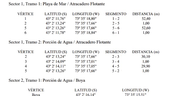 El objeto de esta concesión marítima, sobre el sector otorgado, consiste en dar apoyo náutico a una propiedad privada, amparando la operación de un atracadero flotante y una boya para naves menores. Las obras consisten en la instalación de un atracadero flotante de 82,5 metros de largo por 1 metro de ancho y el fondeo de una boya de polipropileno de 600 litros. Los antecedentes de la solicitud se encuentran a disposición del público en la Capitanía de Puerto de Quellón. El presente extracto se encuentra visado por la Capitanía Puerto antes señalada.-