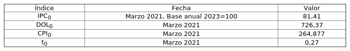 Tabla 2: Coeficientes de indexación