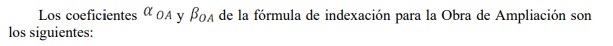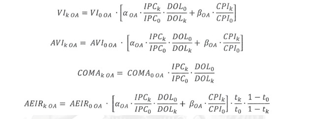 El subíndice 0 de las fórmulas anteriores corresponde al segundo mes anterior al mes del último día de recepción de ofertas del proceso en el cual fue adjudicada inicialmente la Obra de Ampliación, con el fin de conformar los valores base de los índices de forma tal que, al mes de la entrega de oferta, la aplicación de las fórmulas de indexación para el A.V.I., C.O.M.A. y A.E.I.R. dé como resultado el A.V.I., C.O.M.A. y A.E.I.R. que conforman el V.A.T.T. en cada una de sus componentes.