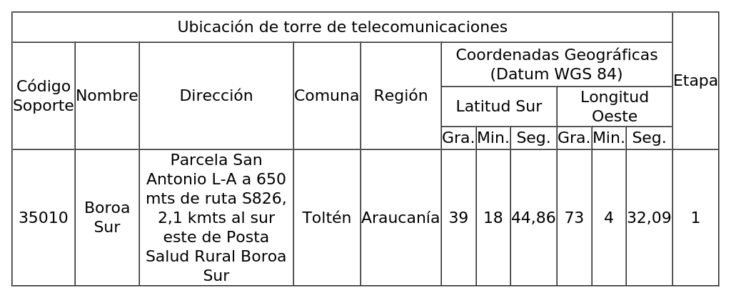 1. Autorízase a la concesionaria instalar, operar y explotar una (1) torre de telecomunicaciones, destinada a soportar sistemas radiantes, según se indica a continuación: