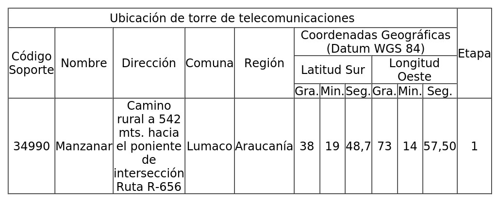 2. Autorízase a la concesionaria instalar, operar y explotar una (1) torre de telecomunicaciones, destinada a soportar sistemas radiantes, según se indica a continuación: