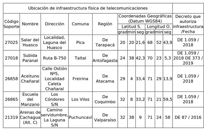 e) El decreto supremo Nº 99 de 2012, del Ministerio de Transportes y Telecomunicaciones, que fija el reglamento que establece los requisitos para obtener, instalar, operar y explotar concesiones de servicios intermedios de telecomunicaciones que únicamente provean infraestructura física para telecomunicaciones.