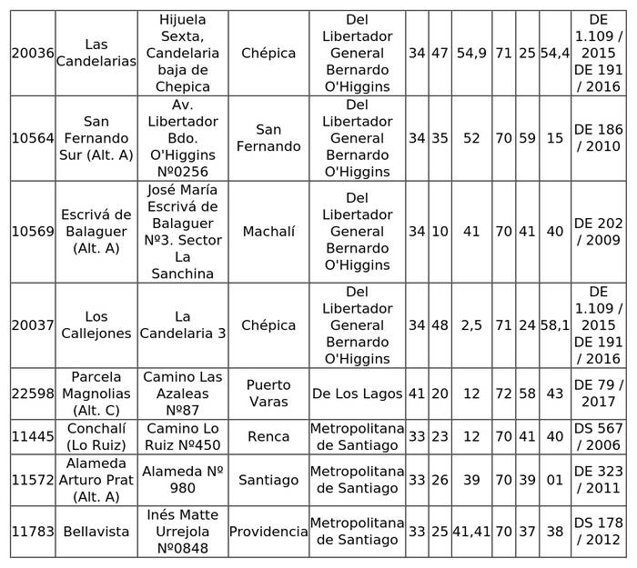 DS: Decreto Supremo, DE.: Decreto Exento.