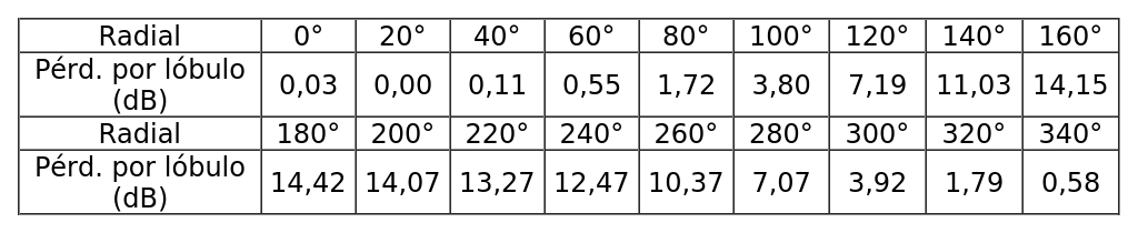- Diagrama de radiación horizontal de acuerdo a la siguiente tabla: