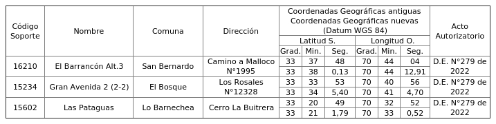 Para la región: Metropolitana de Santiago.