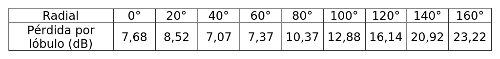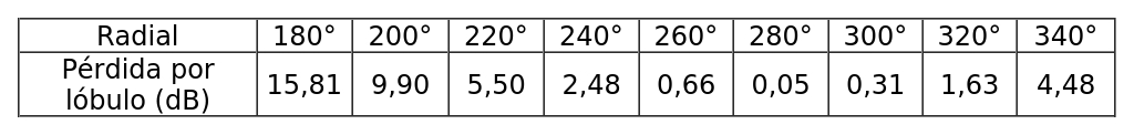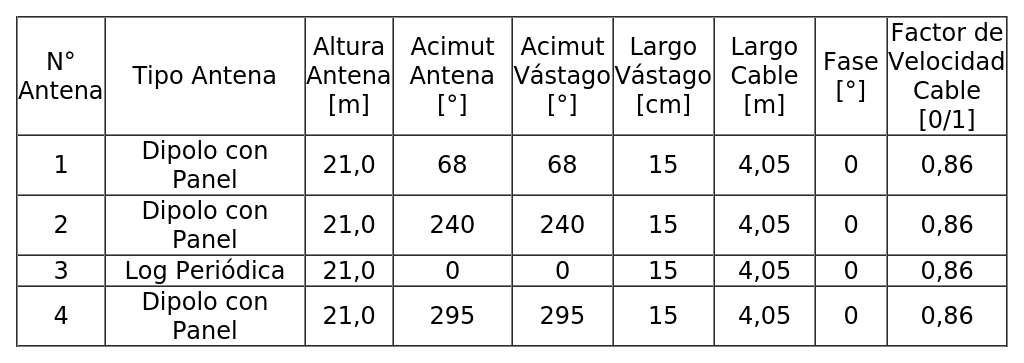 - Arreglo de antenas, de acuerdo al siguiente cuadro: