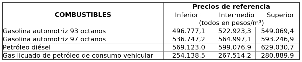 DETERMINA PRECIOS DE REFERENCIA PARA COMBUSTIBLES DERIVADOS DEL PETRÓLEO