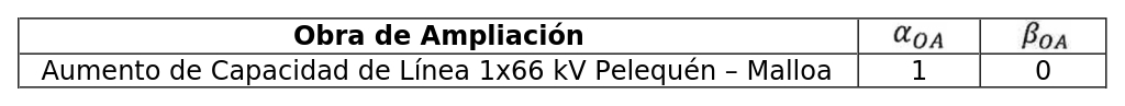Los coeficientes αOA y βOA de la fórmula de indexación para la Obra de Ampliación son los siguientes: