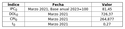 IPCk Valor del Índice de Precios al Consumidor del segundo mes anterior al mes k, publicado por el Instituto Nacional de Estadísticas.