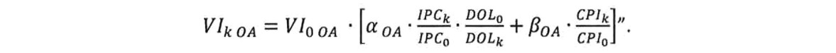 VI0OA Valor de inversión actualizado de la Obra de Ampliación, según lo indicado en el resuelvo primero del presente decreto.