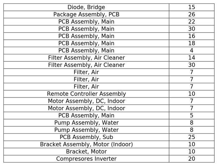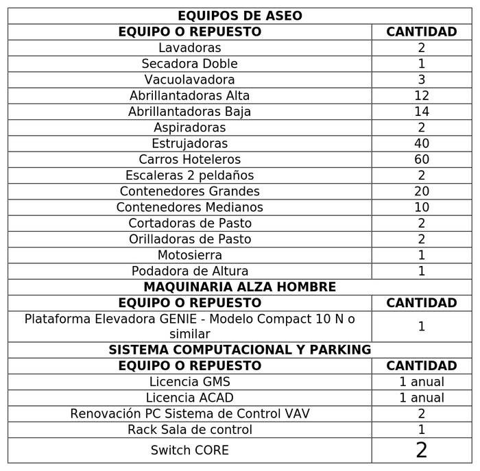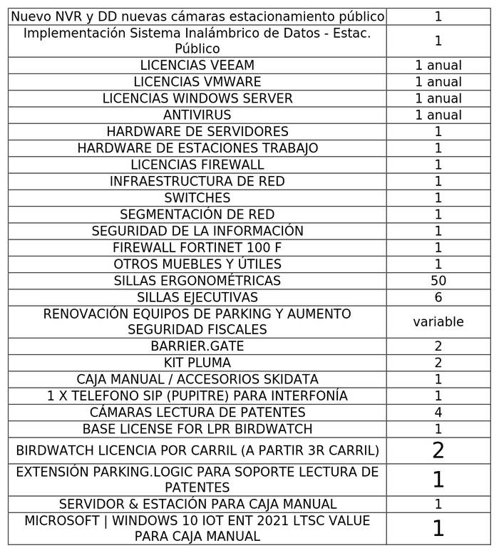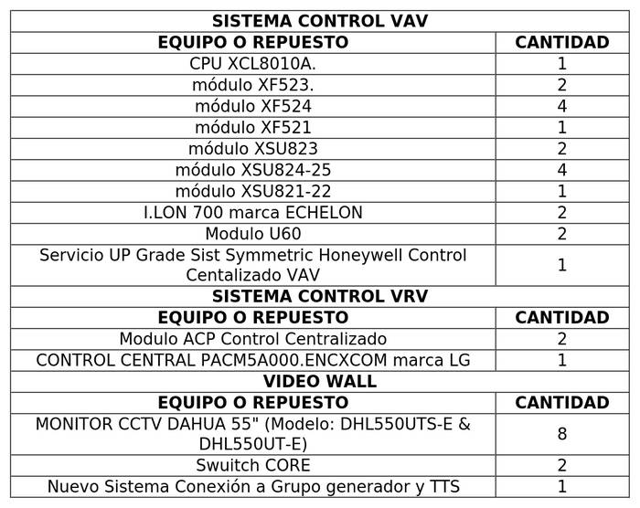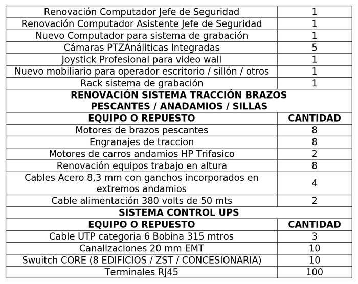 2.5 La Sociedad Concesionaria, dentro del plazo máximo de 18 meses, contado desde la publicación en el Diario Oficial del presente decreto supremo, deberá adquirir, resguardar e instalar, en su caso, los repuestos críticos, software y licencias que se individualizan en la Tabla N°1 siguiente: