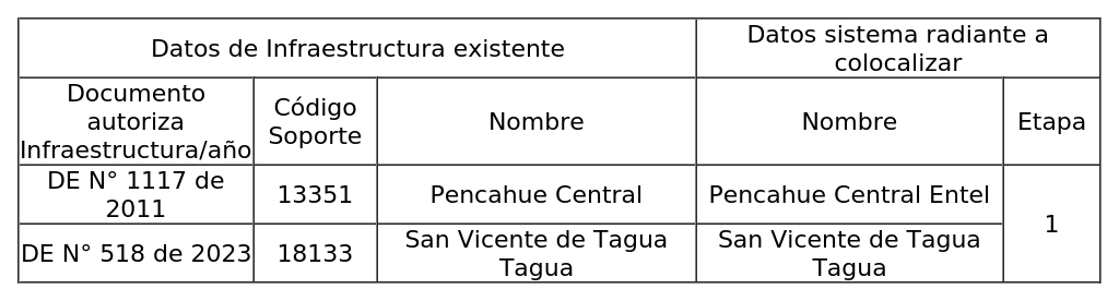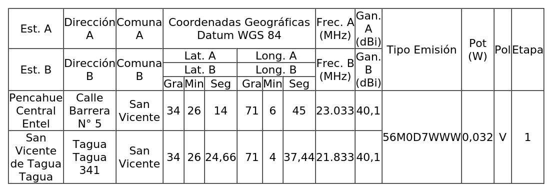 1. Autorízase a la concesionaria para instalar, operar y explotar un (1) radioenlace, para la Región del Libertador General Bernardo O'Higgins, según se indica a continuación:
