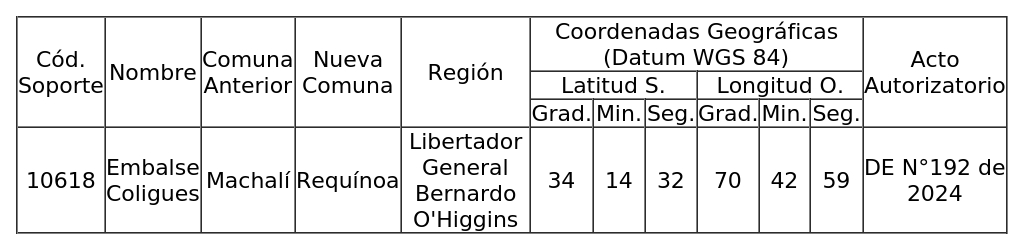 1. Autorízase a la concesionaria para modificar la comuna de una (1) torre de telecomunicaciones, como se detalla a continuación: