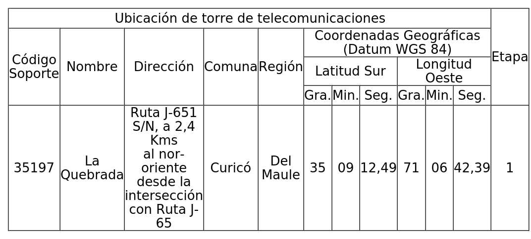 1. Autorízase a la concesionaria instalar, operar y explotar una (1) torre de telecomunicaciones, destinada a soportar sistemas radiantes, según se indica a continuación: