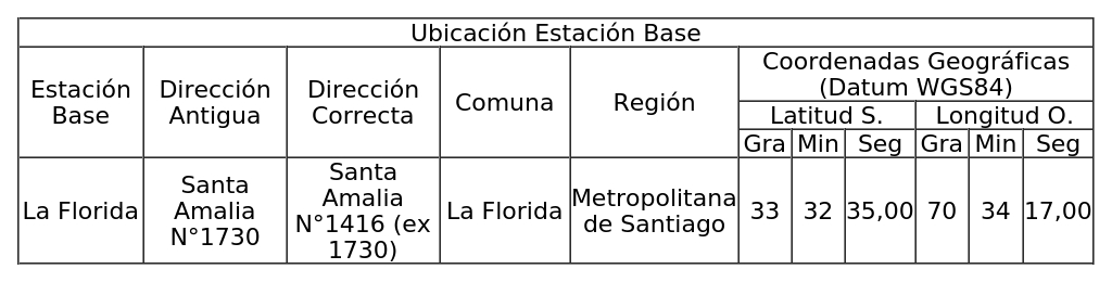3. Según ingreso Subtel N° 93.123/2025, complementado por ingreso Subtel N° 126.100/2025: Autorízase a la concesionaria para rectificar la dirección de una (1) Estación Base autorizada mediante decreto supremo del literal d) de los Vistos, como se indica a continuación.