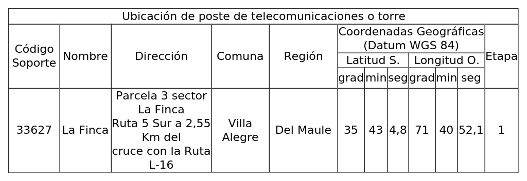 1. Autorízase a la concesionaria para instalar, operar y explotar una (1) torre de telecomunicaciones, destinada a soportar sistemas radiantes, según se indica a continuación: