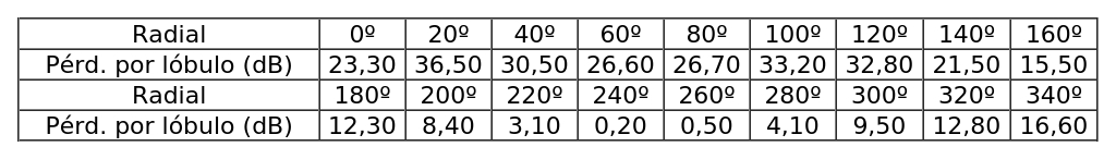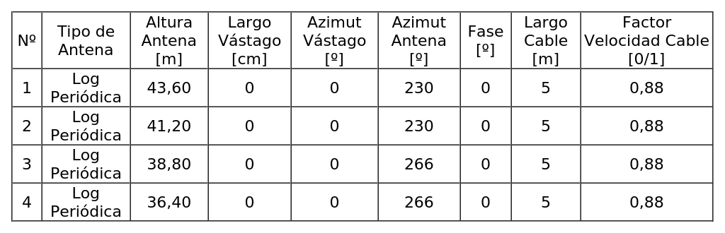 - Arreglo de antenas de acuerdo a la siguiente tabla:
