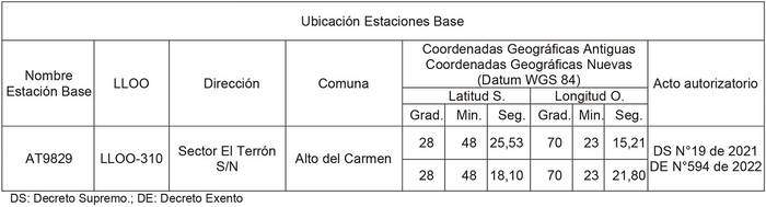 1. Autorízase a la concesionaria para modificar las coordenadas geográficas de una (1) Estación Base, según se indican a continuación: